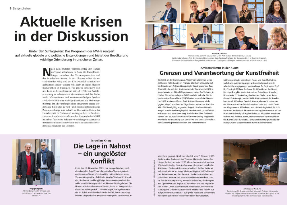 Der Jahresbericht der Münchner Volkshochschule stellt eine Zusammenfassung des ganzen Jahres der MVHS vor. Von Krisen über Mensch und Natur bis hin zu Schulabschlüssen wird hier über alles berichtet, was im letzten Jahr die MVHS bewegt hat. Das Layout ist schlicht, modern und teilweise recht kleinteilig mit vielen Informationen zu den jeweiligen Themen. Konträr dazu ist die Titelstory mit großzügigen Bildern und kleinen Wissenskästen auflockernd und läd zum stöbern ein.
